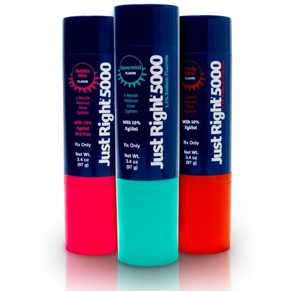 JustRight5000 Toothpaste: For kids At-Risk for cavities Just Right(r) 5000 1.1% NaF Dentifrice, 6-Month Metered Dose System to maximize fluoride and minimize pediatric dispensing risk.